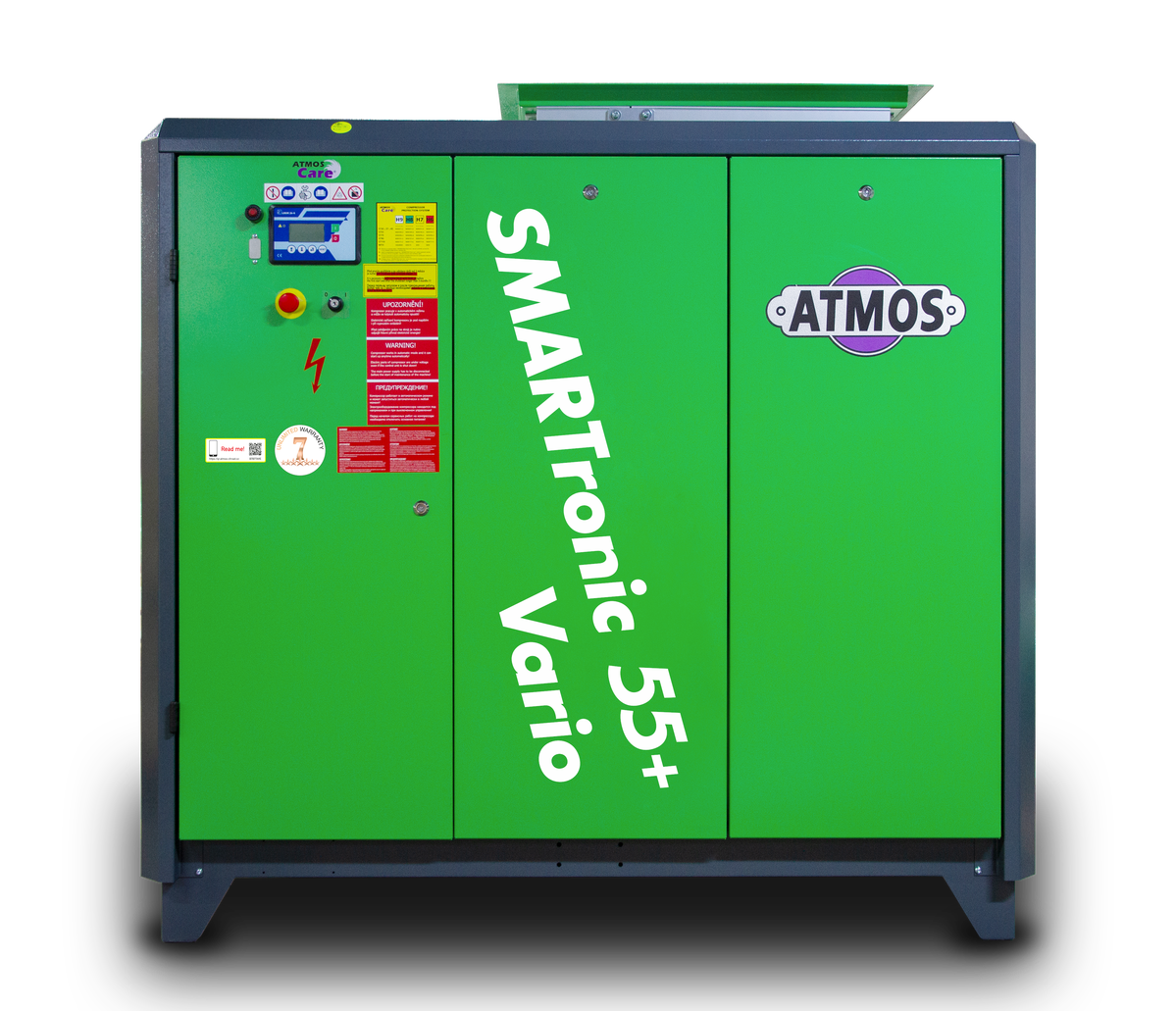 ATMOS Smartronic air compressors, ranging from 30kW to 110kW, are oil-lubricated and air-cooled screw air compressors renowned for their robustness.